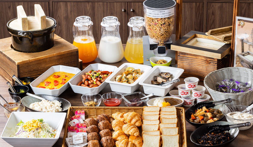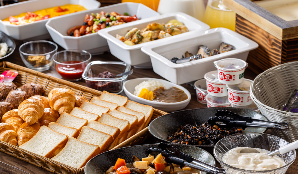 朝は焼き立てパンやオリジナルカレー等、バラエティ豊かな朝食をお召し上がりください。